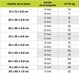 Emboquillador a base de cemento portland reforzado con resinas y aditivos especiales más pigmentos, diseñado para rellenar boquillas o juntas de 3 a 15 mm de ancho en instalaciones de revestimiento cerámico o piedras.