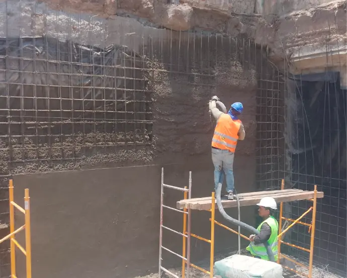 Se distingue por su amplia utilización en el revestimiento de túneles, estabilización de taludes, reparación de estructuras de concreto y obras de sostenimiento.
