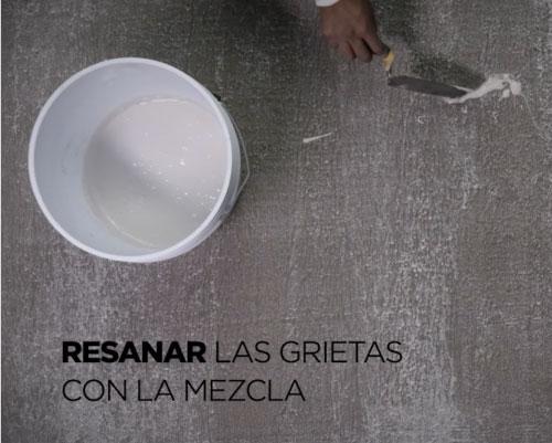 Agregue en una cubeta 1 KG de IMPERCOOL BASE CEMENTO con 500 ml de agua y mezcle hasta obtener una pasta homogénea.